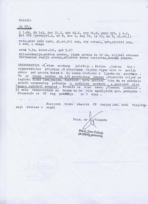 sedimentacija skočila preko 90, neočekivano sam se našao