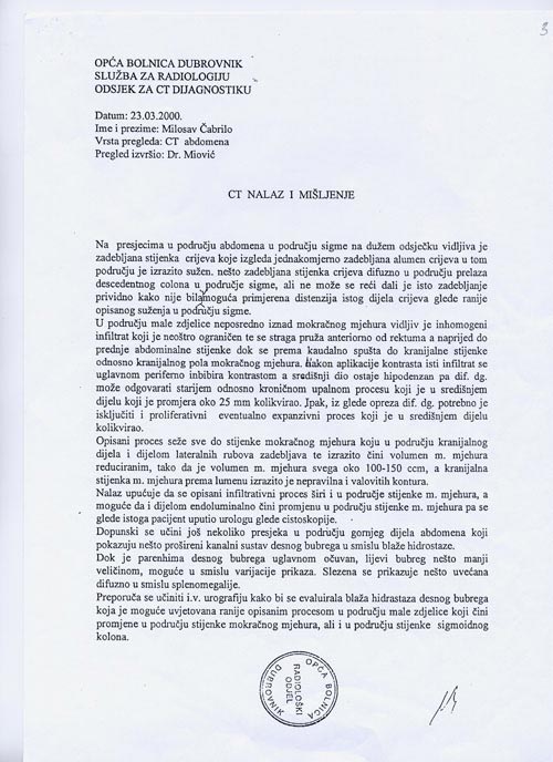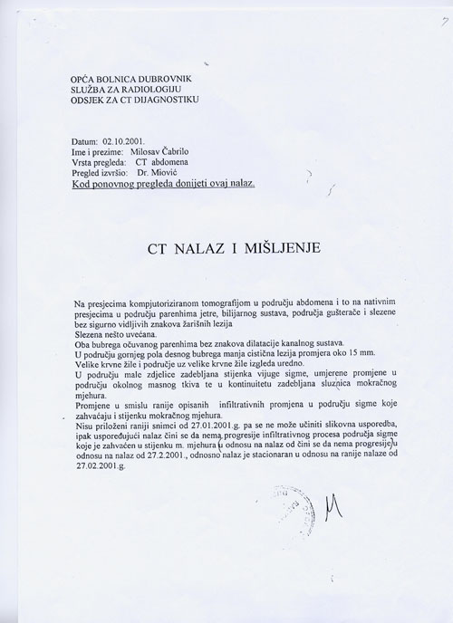 spominjana je i metastaza. Moja životna nit bila se do beznađa